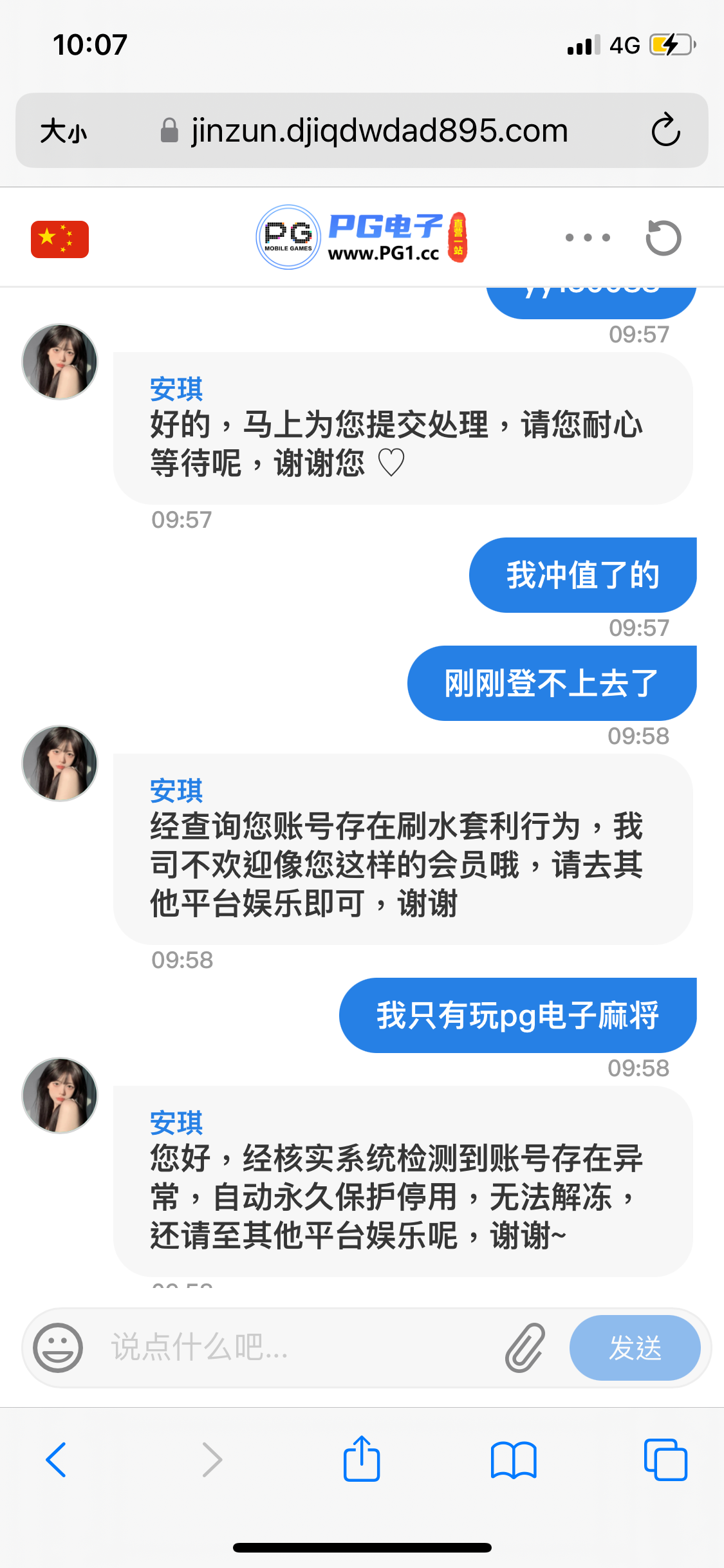 PG一站刚刚充了2w直接封号了