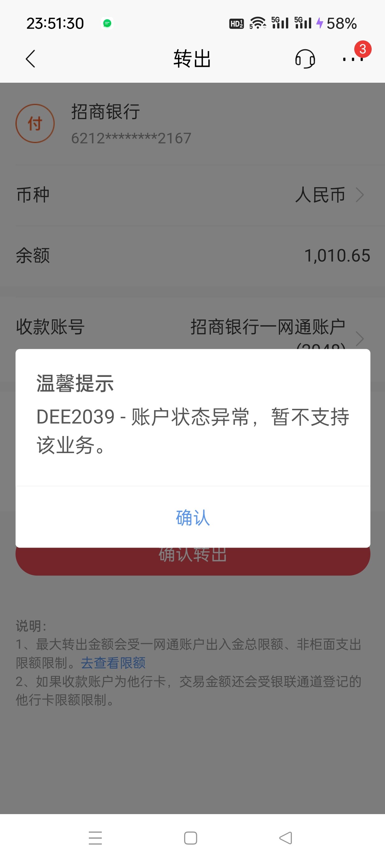 招行三类户能解冻吗
