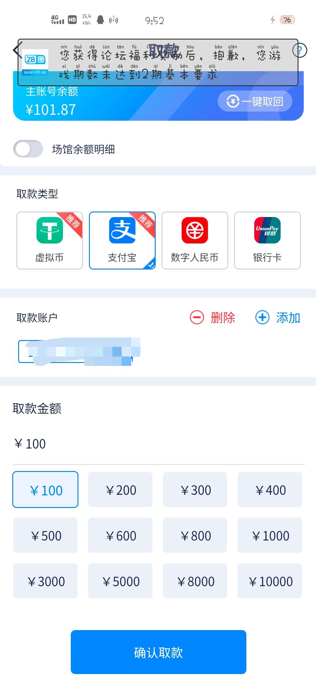 感谢黑总红牛出款100
