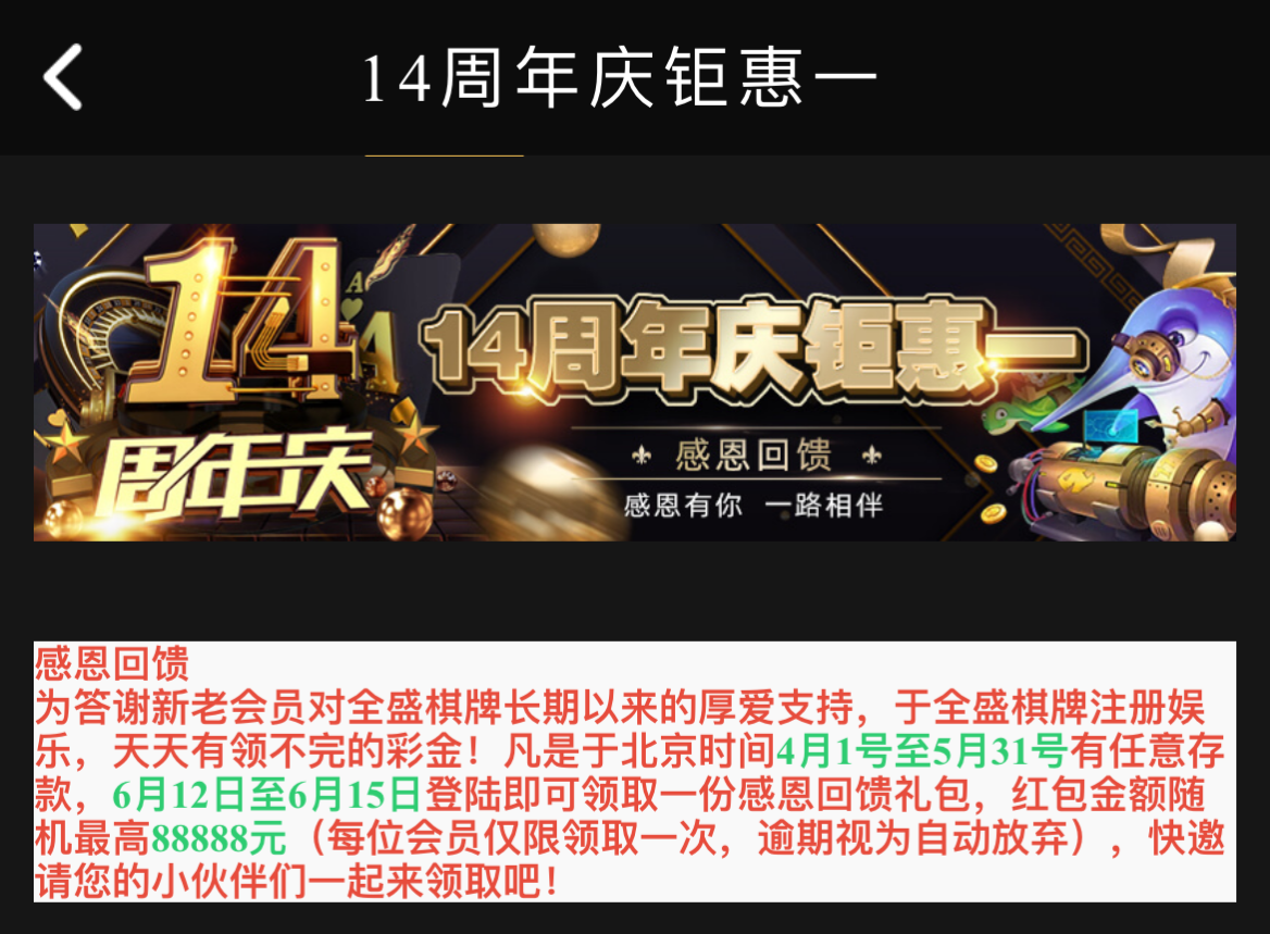 【全盛棋牌】—✅—【14周年红包】