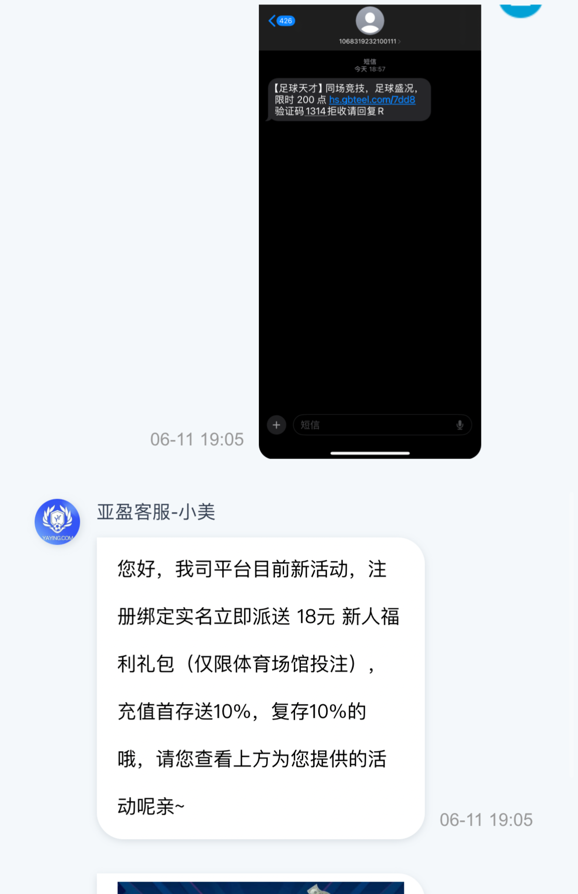 注册绑卡,客服发短信图账号申请