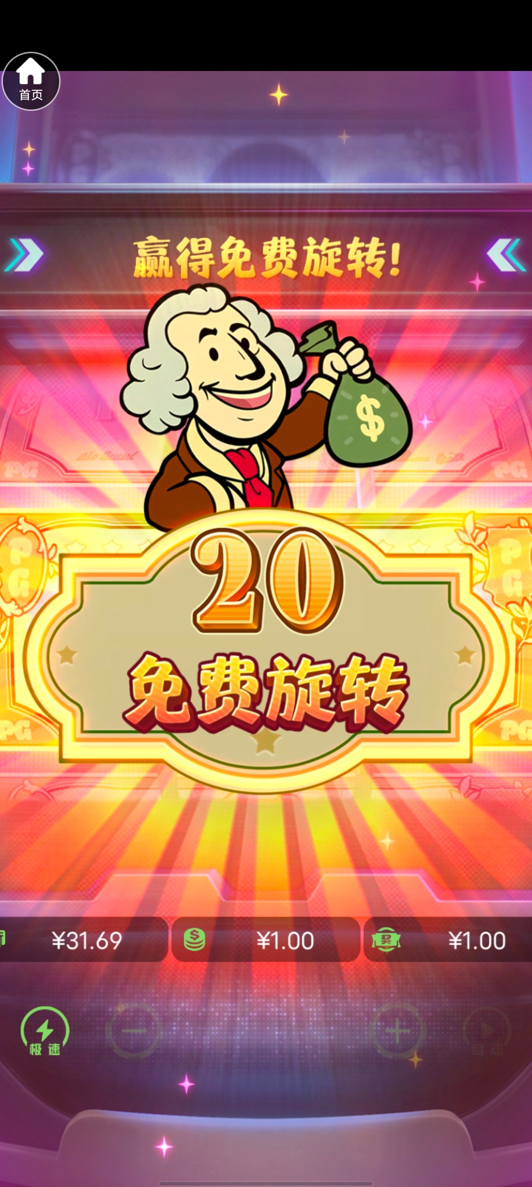 充了100想着玩玩麻将,杀到30,跑去快钱来了,没想到1块钱给了20次免费炸了1500