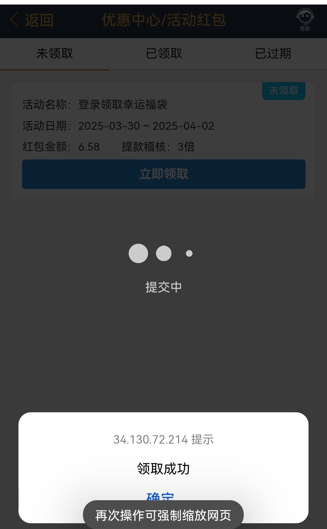 碰瓷回访,联系在线客服说电话回访彩金,另外有部分人还有登录福袋3倍流水