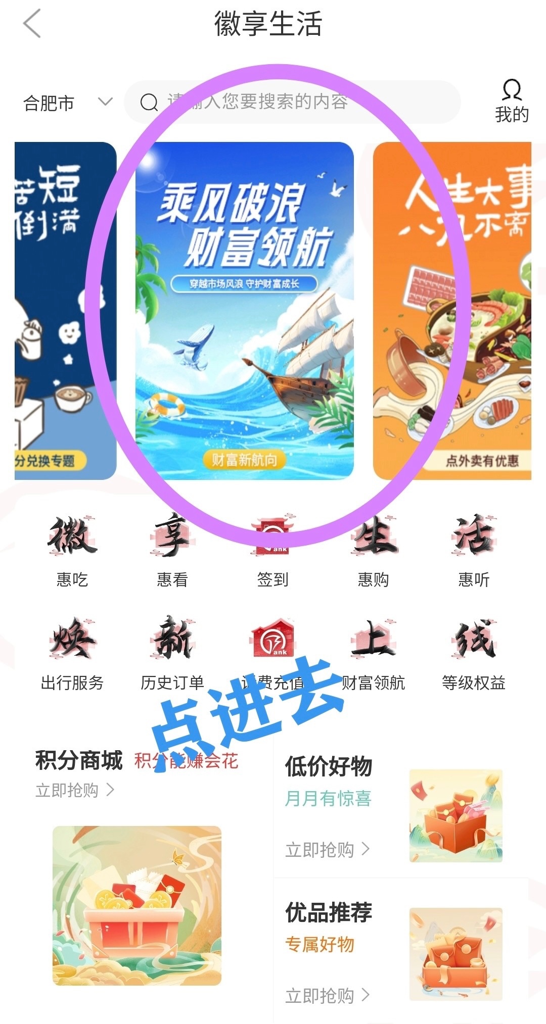 打开app首页全部,找到那一栏便民生活,微享生活,乘风破浪财富领航,新客见面礼,可能刚开始显示不支持,回到首首页搜索理财一键签约在回去就能领了