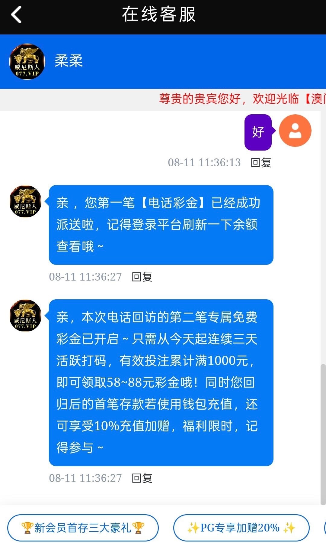 【威尼斯人077】—✅—电话回访彩金