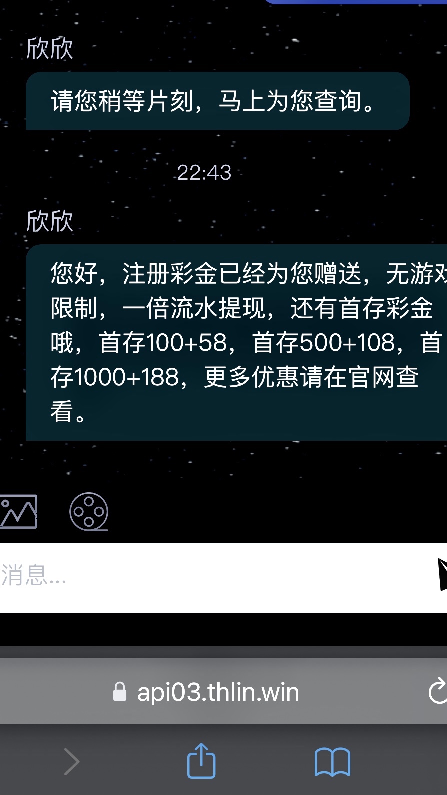 恭喜您好运成为特邀用户,首存100送58,二存2000再送288,首存500送108,二存3000再送388,