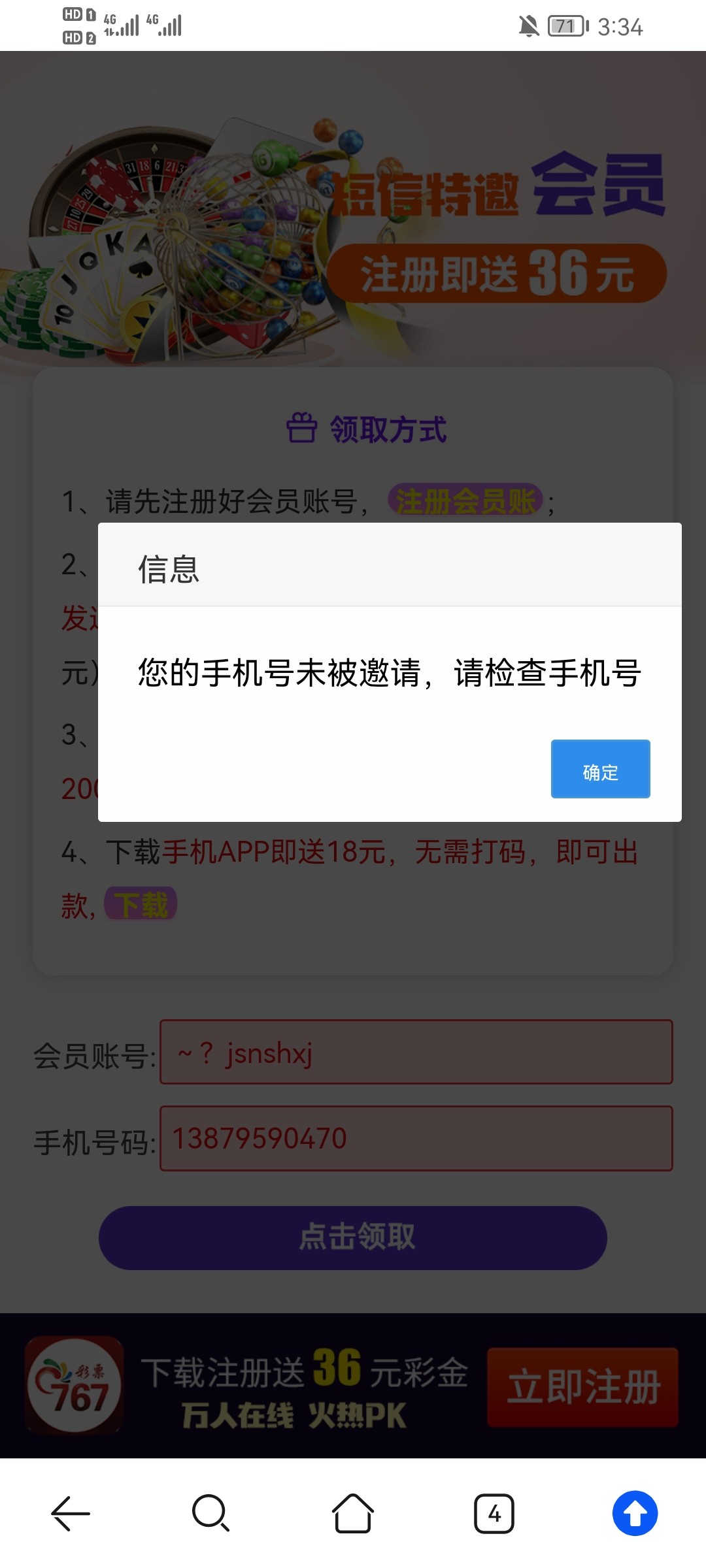 特邀碰瓷,新用户注册好去链接里申请36,限制电子/棋牌/捕鱼,最低200提现。新出的估计没多少人有,等一段时间就行了,有空就去看。