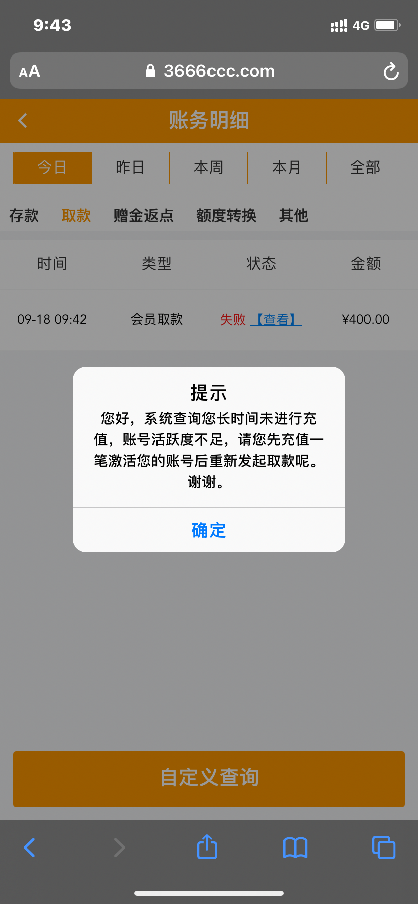 我打到100多。提款100被退回,需要充值。然后我就随便打到300多,然后故意输光。