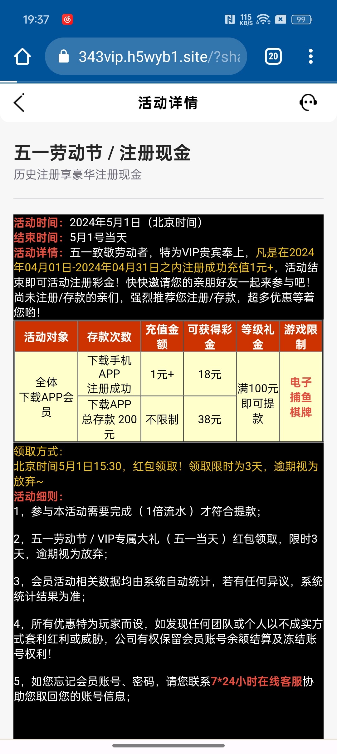 5月1号之前下载APP注册完善信息,节日当天回馈18彩金