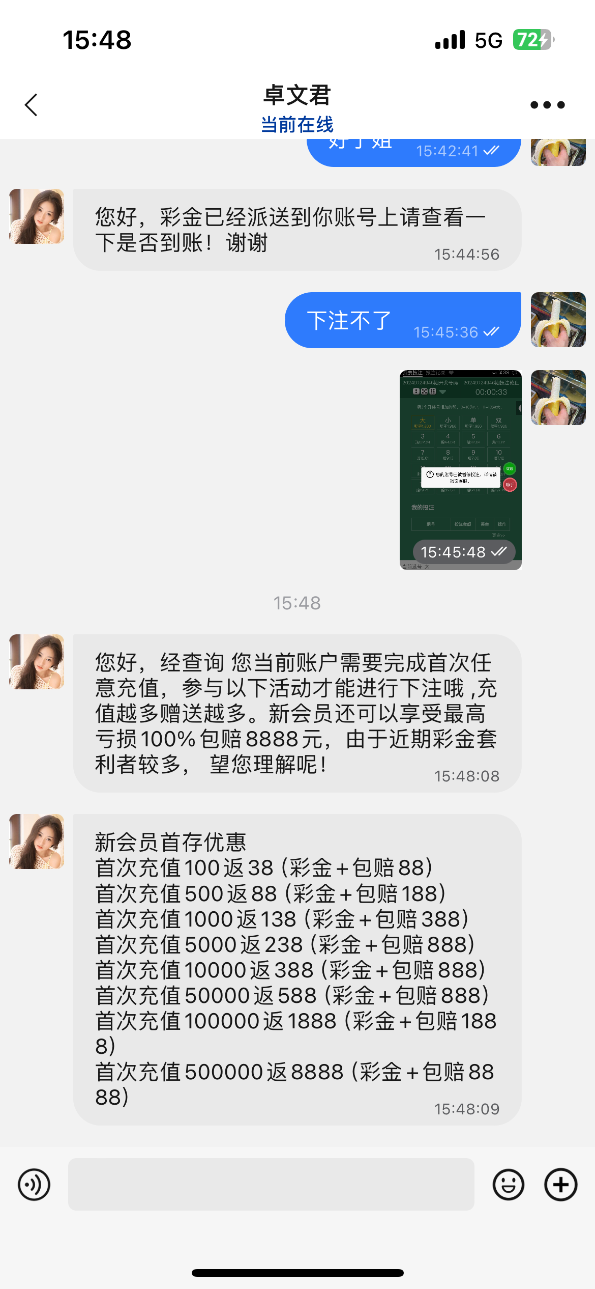 给了,不能投注要充值