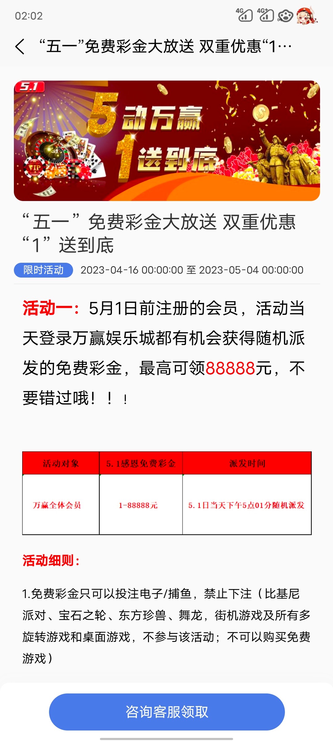5.1回馈免费送彩金1-88888!