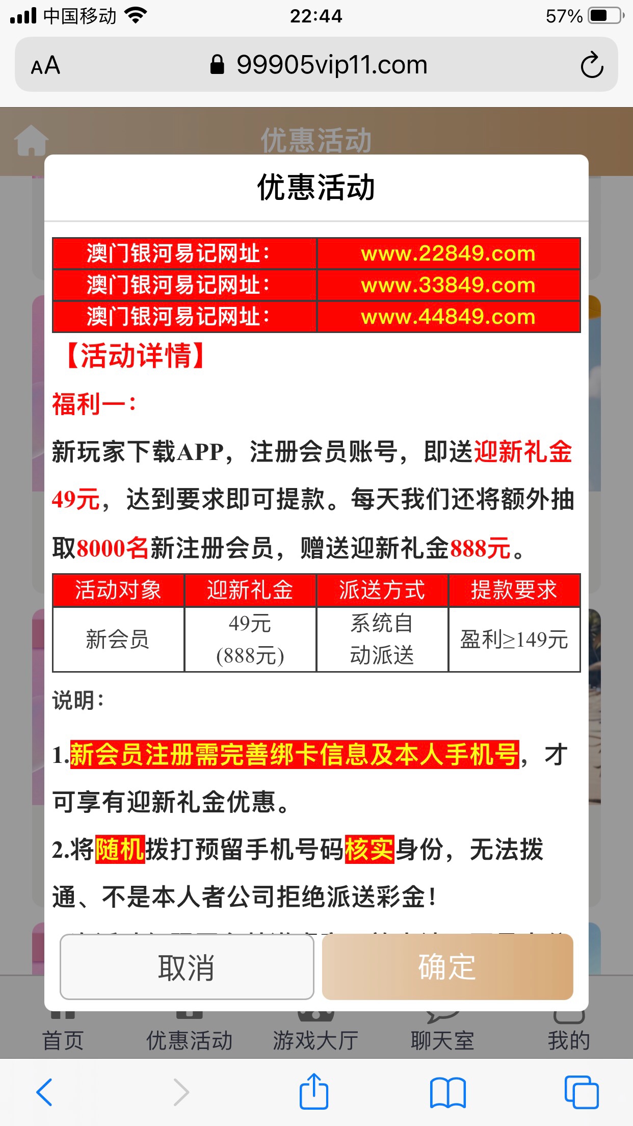 这个链接注册了然后再去问客服说要app下载地址他会发一个链接给你你点进去再登录一次账号就有49了 可惜我打不出来