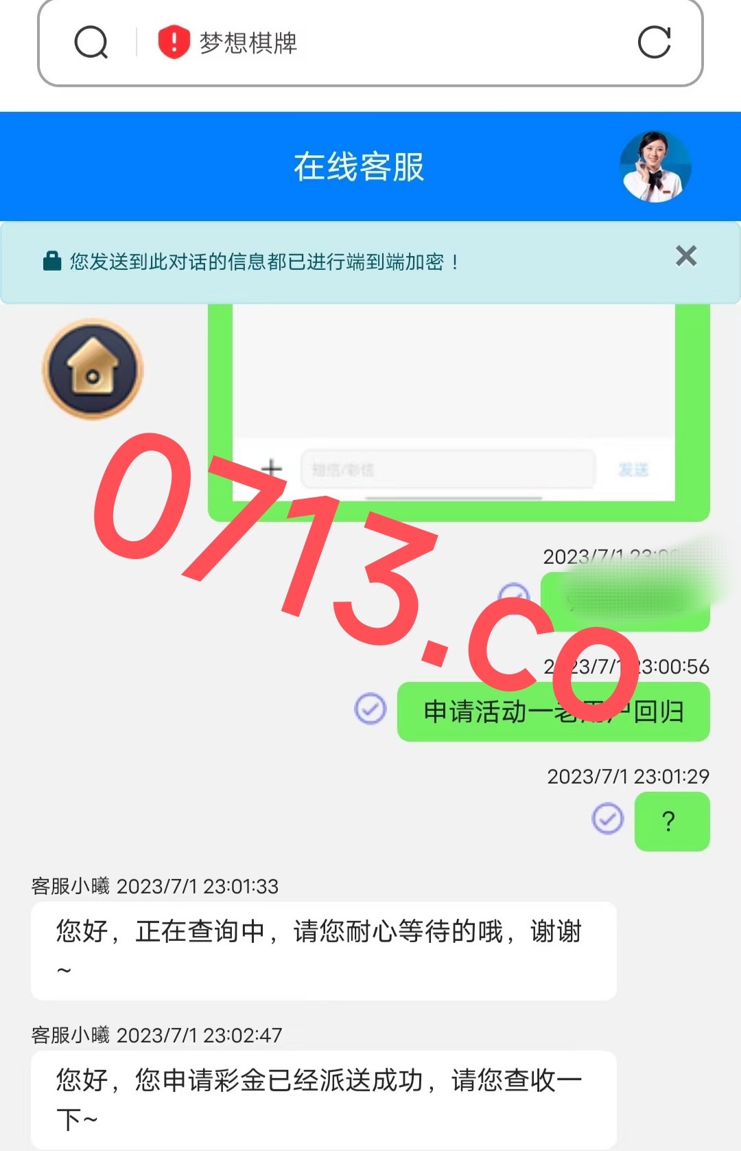 老用户上号 联系客服申请老用户回归彩金 要短信图的话 下方有
